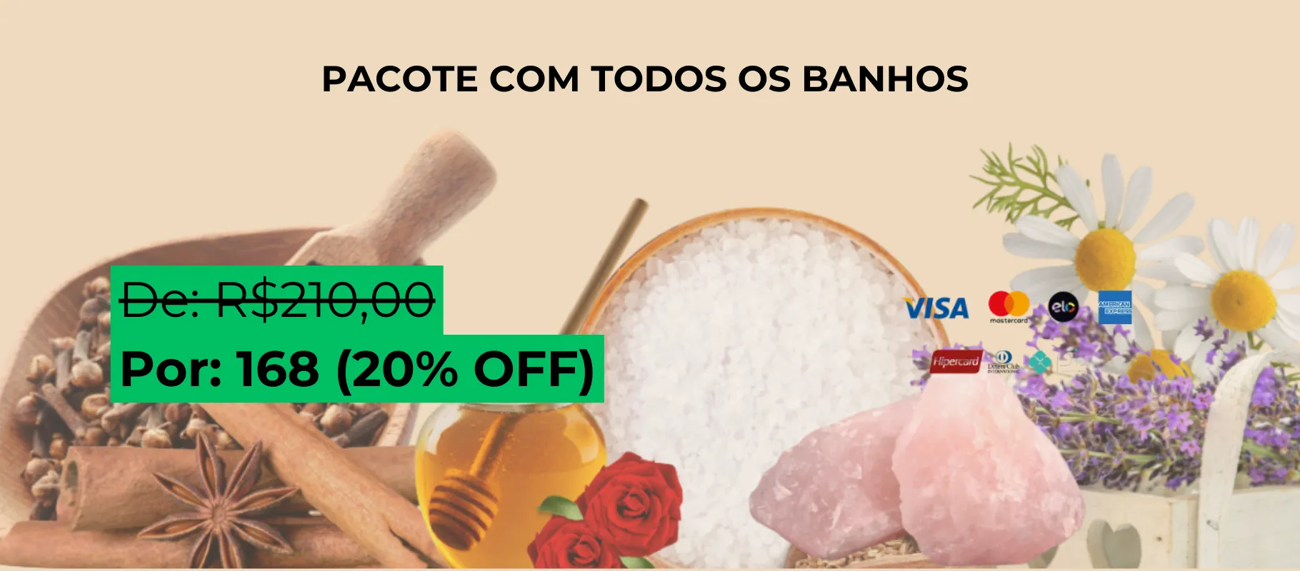 Se ficou na dúvida de qual banho escolher ou acha que precisa de todos, verifique nosso pacote promocional que inclui TODOS os banhos:
